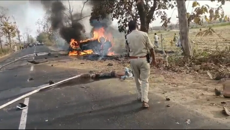 MP न्यूज़ Dewas News : कार बाइक के आमने सामने टक्कर, एक्सीडेंट में एक की मौत कार जलकर हुई ख़ाक 17/03/2025
