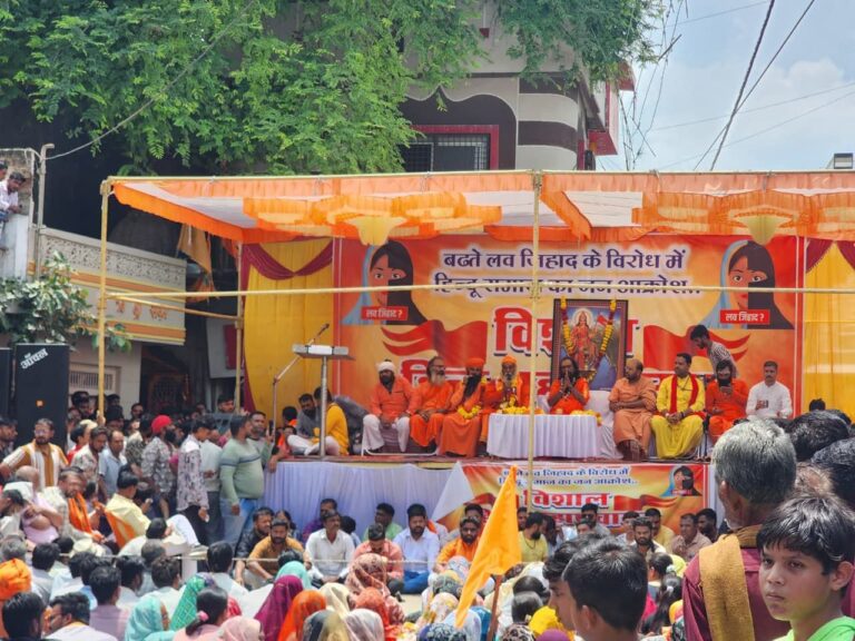 खाचरौद में बढ़ते लव जिहाद के विरोध में सर्व हिंदू समाज की महापंचायत में लोग एकत्रित हुए